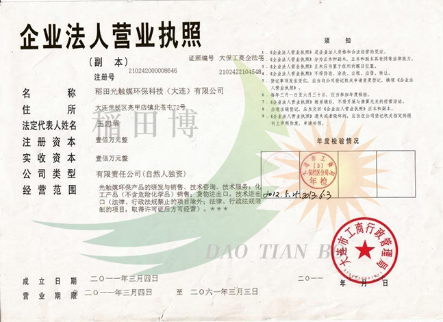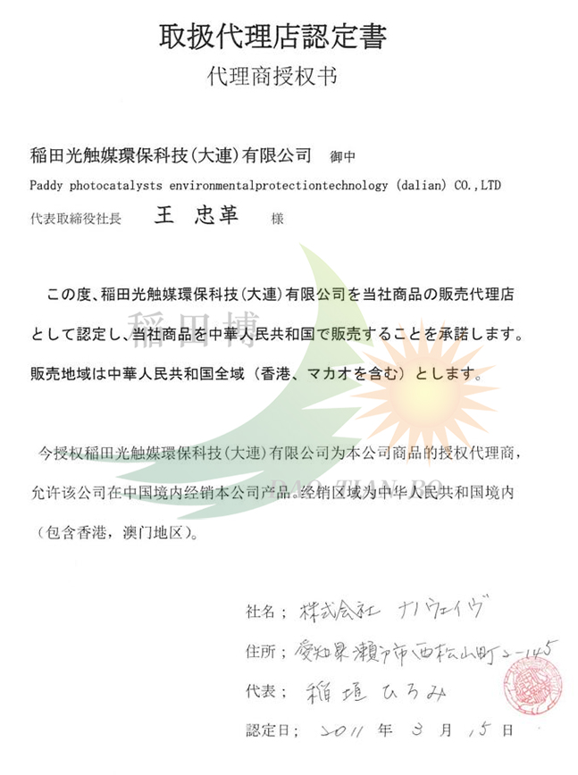 中国总部(辽宁-大连):400-040-1357 稲田光触媒環保科技(大連)有限公司