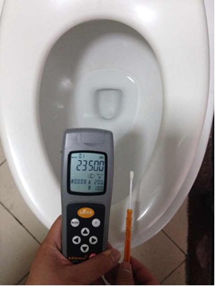 3分钟后再次检测马桶圈上的细菌,细菌数量下降了187倍。