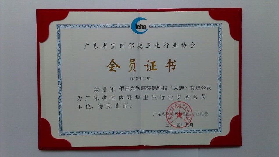 稻田光触媒加入广东省室内环境卫生行业协会