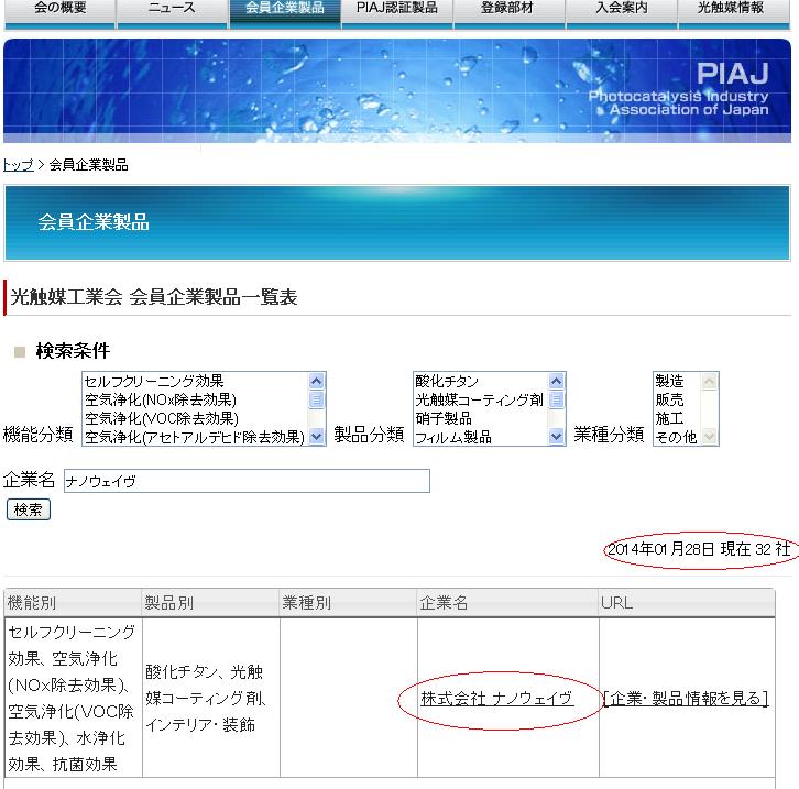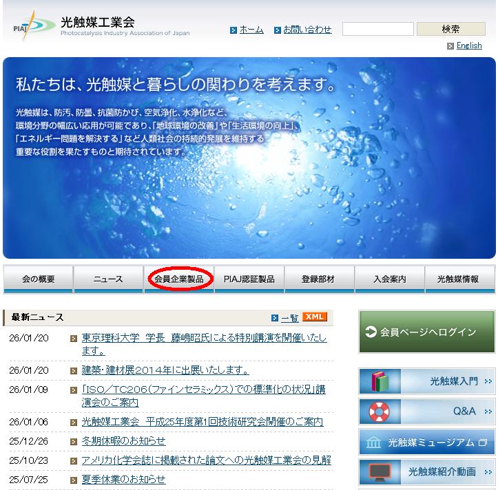 登陆日本光触媒工业会网站http://www.piaj.gr.jp