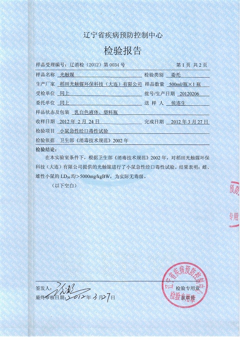 经辽宁省疾病预防控制中心检测,本产品对人体无毒。